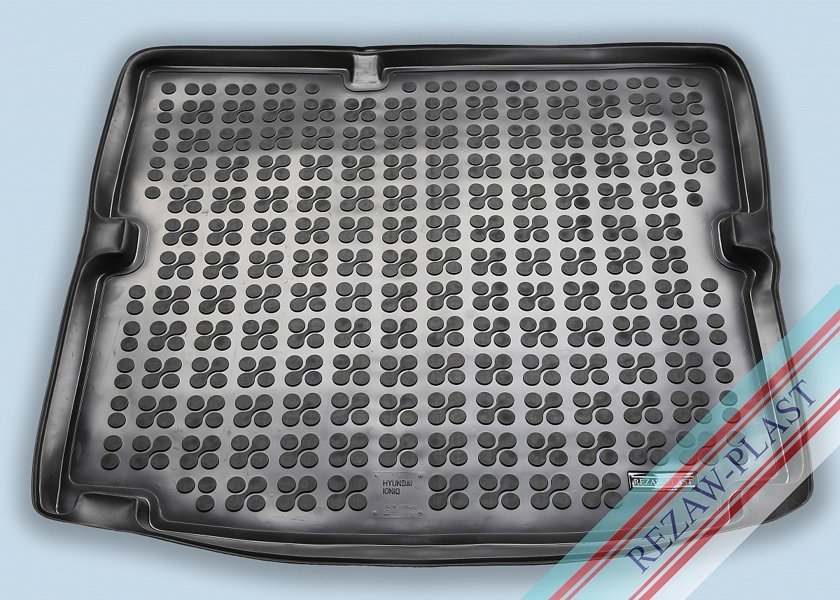 Modellanpassad/Modellanpassade bagagerumsmatta i svart gummi.