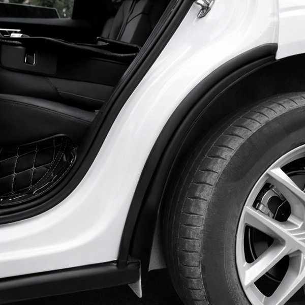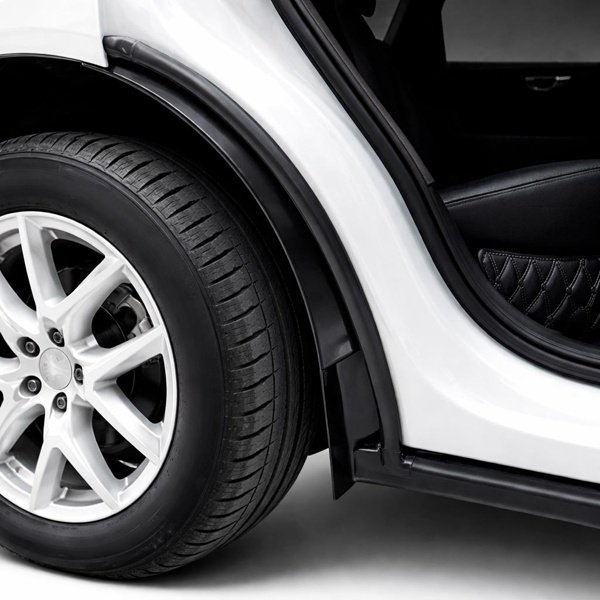 Dessa smutsskydd monteras i framkanten av bakre hjulhuset och fungerar som en barriär som bryter luftflödet från bakhjulet. På så sätt hindras smuts från att nå dörröppningen och insidan av bakdörrarna.