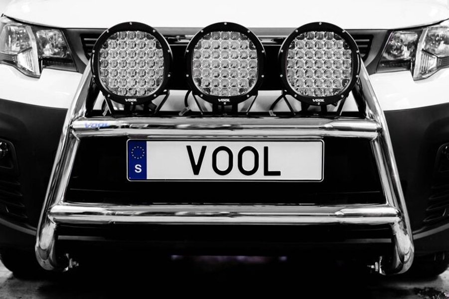Frontbågen har färdiga svetsade fästen för 3 st extraljus (maxbredd Ø225).